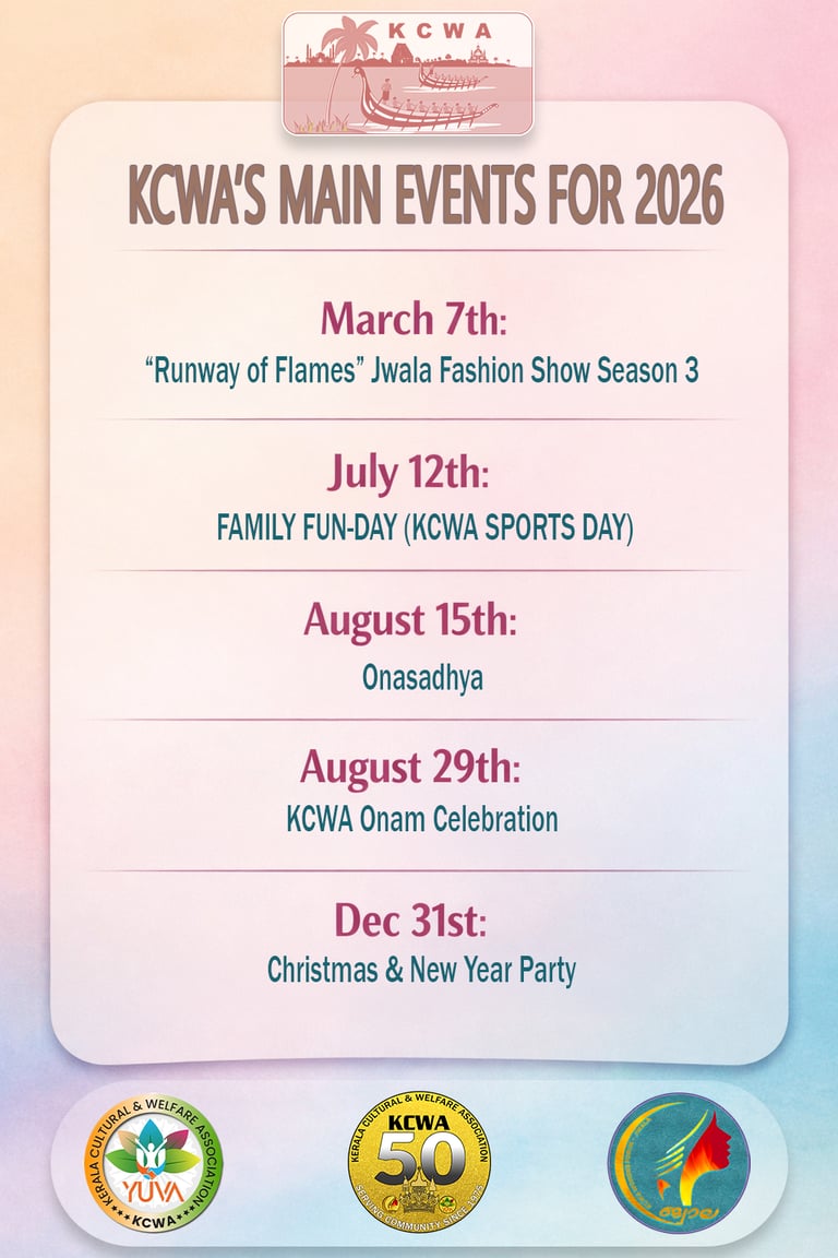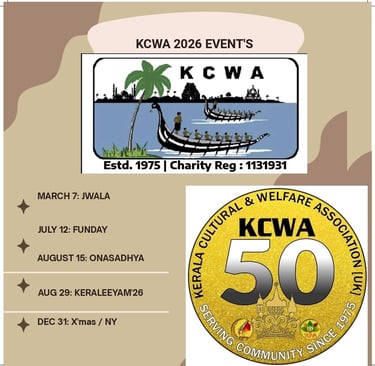 KCWA is a UK-based charity dedicated to supporting the local community, focusing on educational and cultural initiatives, particularly for the Malayalee community in and around Croydon.