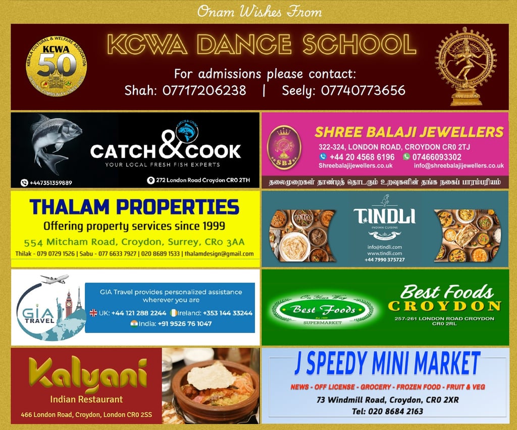 The Kerala Cultural and Welfare Association (KCWA) proudly invites you to its Golden Jubilee Celebration—a grand Onam event titled “KERALEEYAM 2025.” Join us for an unforgettable afternoon filled with vibrant cultural performances, traditional festivities, and community spirit as we honour 50 years of heritage and togetherness.